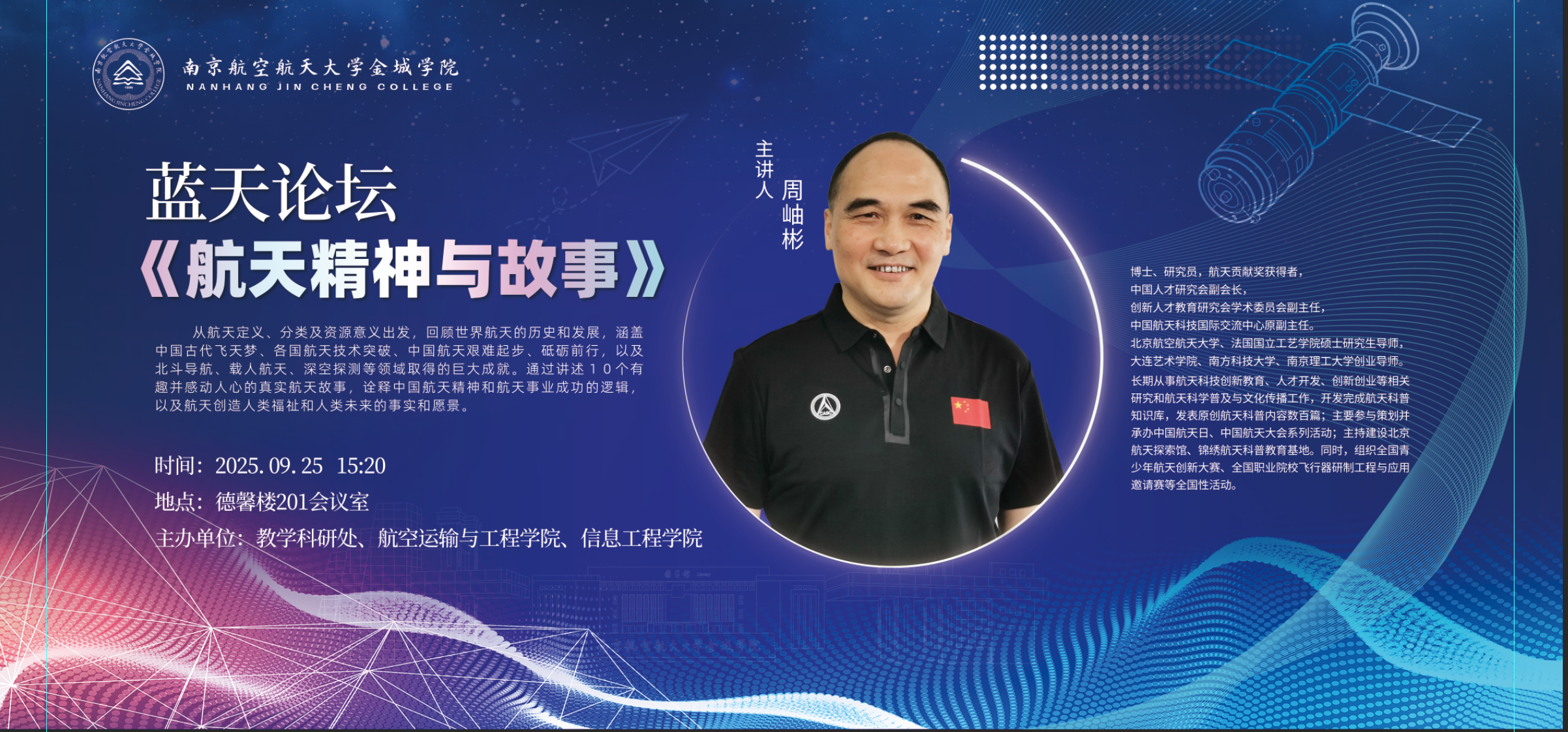 蓝天论坛 |中国航天科技国际交流中心原副主任周岫彬 教授在南航金城学院开讲