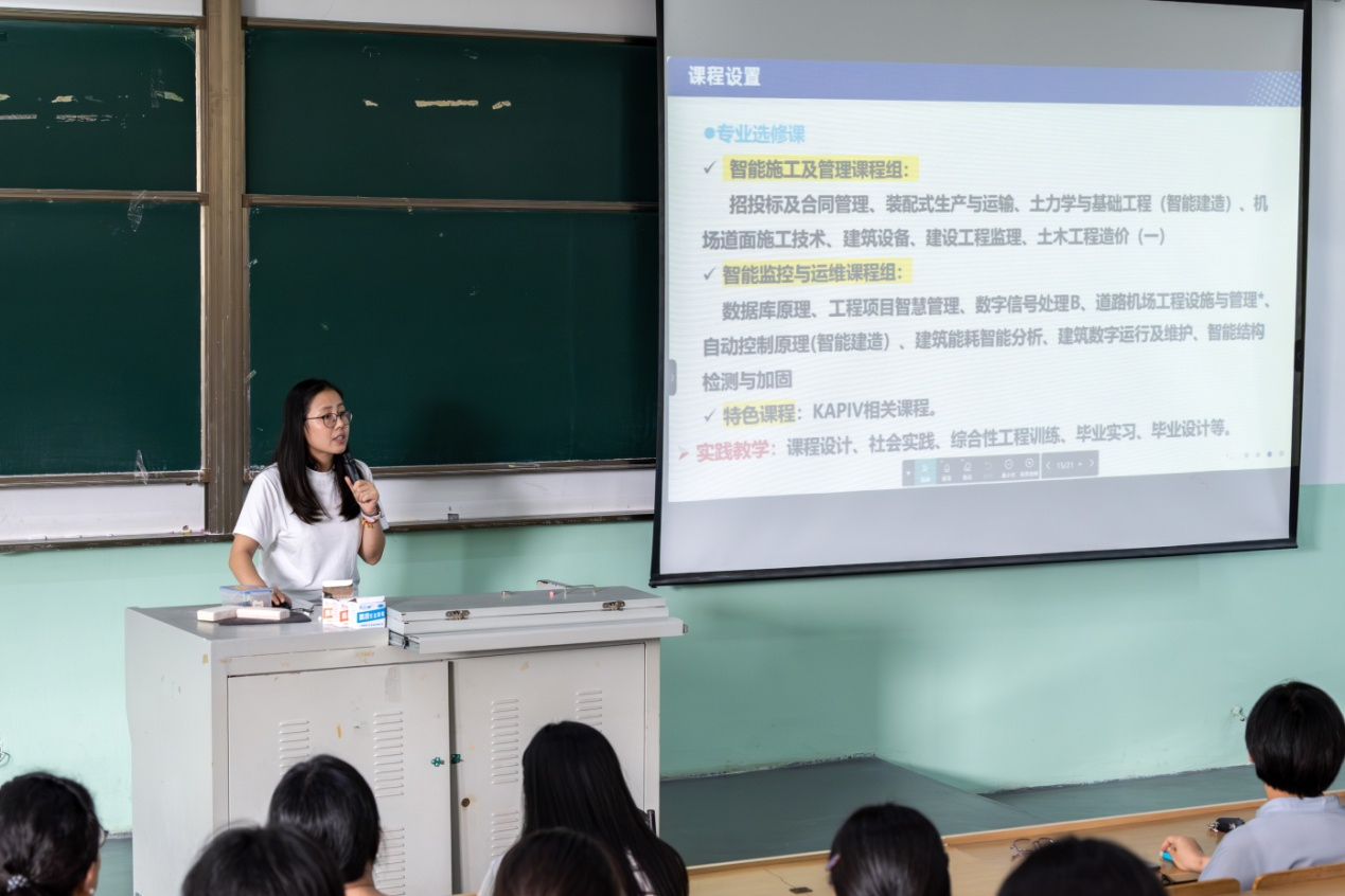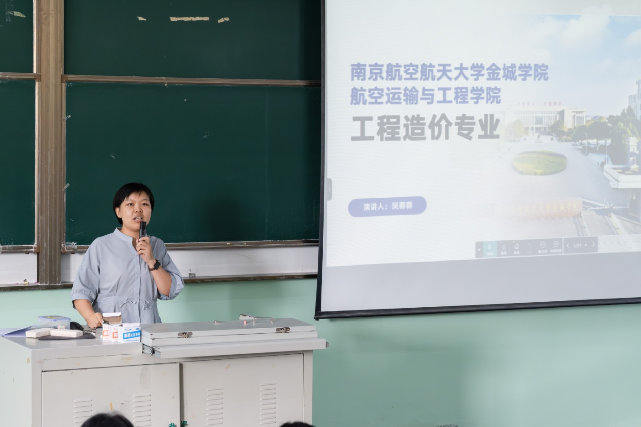 在专业介绍环节,两大专业分别针对性讲解培养规划。智能建造专业主任王思文系统梳理了专业人才培养方案,从课程体系设置、实践教学安排、本科生学分要求等方面展开说明,并结合行业案例介绍就业领域。工程造价专业教师赵海霞老师详细介绍了专业核心课程、就业趋势,重点鼓励新生积极参与学科竞赛与实践活动,同时就造价工程师等职业资格证书的考取规划提供了具体建议,为新生职业发展提前铺路。