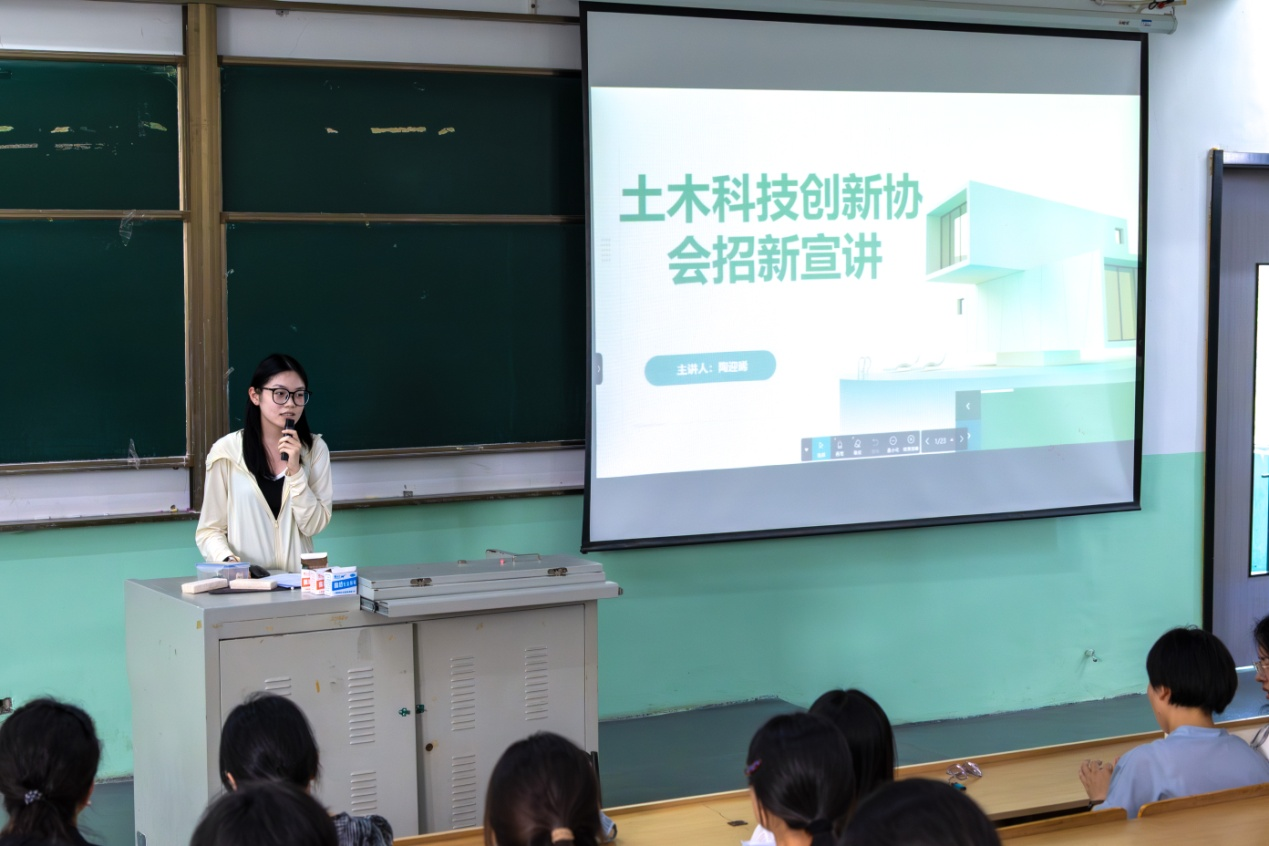 此外,土木科技创新协会主席陶迎晞以“学长视角”分享经验,结合科创室日常的模型搭建、软件实操等学习场景,以及自身从“理论入门”到“项目实践”的成长经历,具体为新生提供校园生活适应技巧(如合理平衡学业与社团)、专业学习方法(如BIM 软件入门路径)等实用建议,帮助新生更快消除陌生感、融入学院环境。