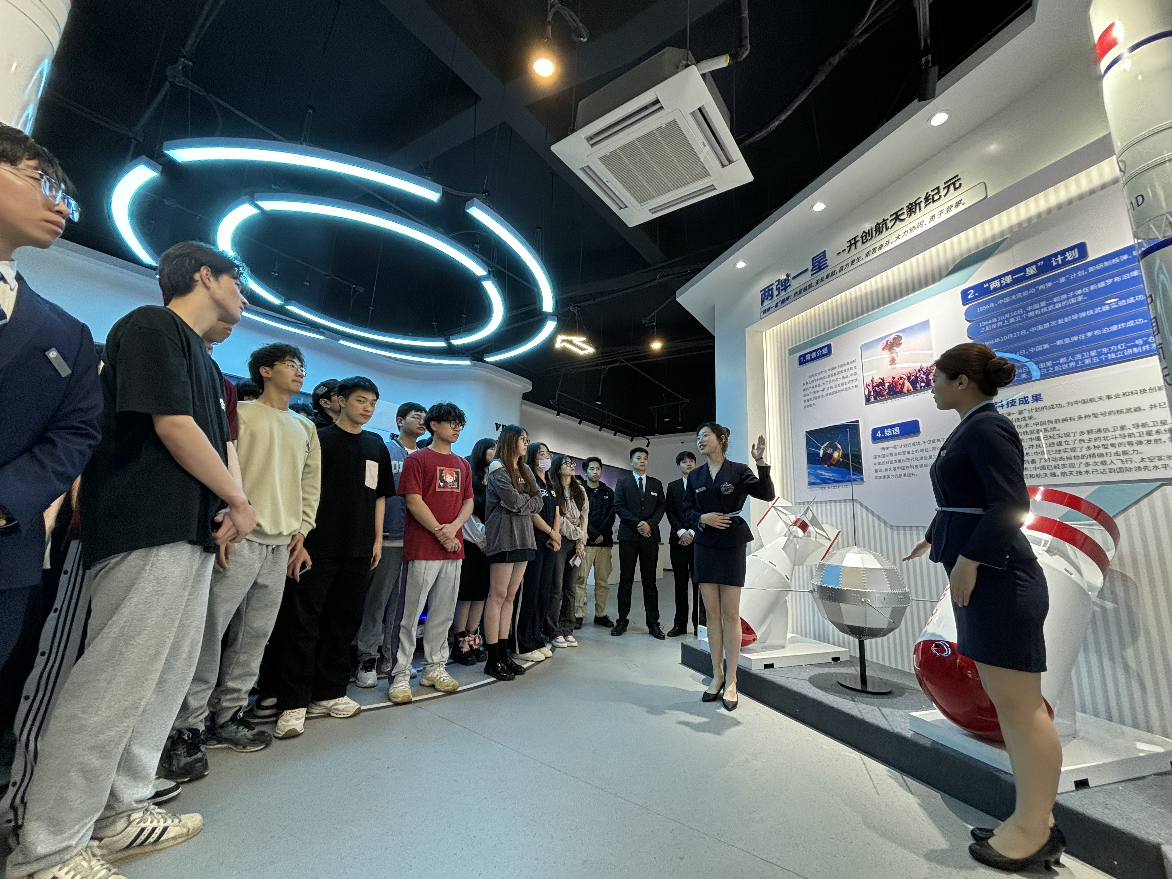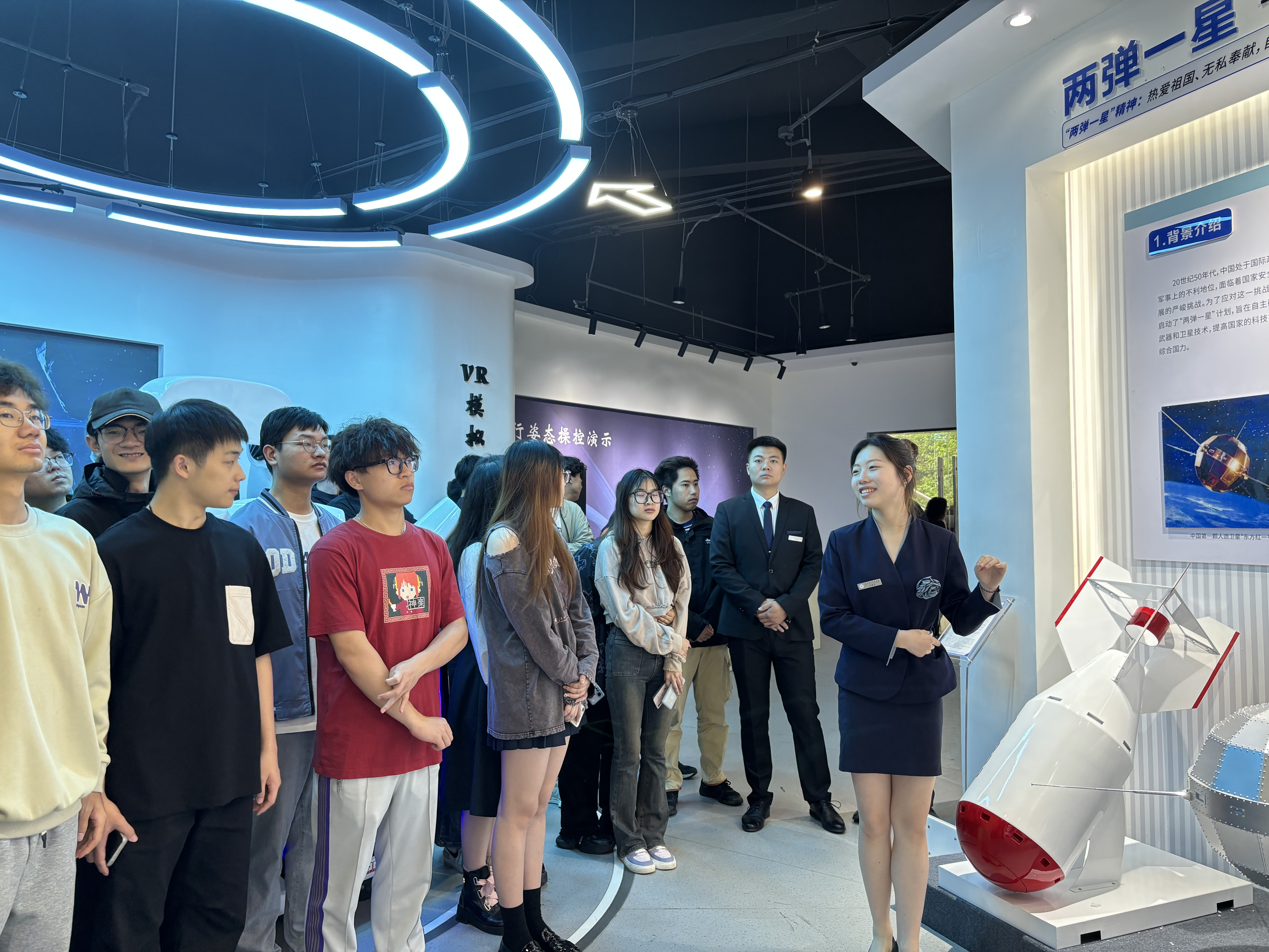 课程结束后,不少同学仍在史料展前驻足观看,或与宣讲团成员交流感悟。夕阳透过科技馆的玻璃穹顶,洒在“金城一号”的机身上,与同学们眼中坚定的光芒交相辉映。这场特殊的信仰公开课,不仅让“两弹一星”精神在新时代青年心中落地生根,更让南航金城学院的航空学子们明确了使命担当:信仰是前行的灯塔,青春是奋斗的底色,作为新时代航空人,他们将以“两弹一星”精神为指引,把个人理想融入国家航空事业,用专业本领诠释信仰力量,在航空强国的征程上书写青春华章。未来,南航金城学院航空运输与工程学院将继续深耕“信仰公开课”品牌建设,依托航空科技馆、专业实验室等优质资源,持续创新教育形式、丰富教学内容,让红色精神与航空特色深度融合,让信仰教育常态化、长效化开展,培育更多兼具家国情怀、专业素养与坚定信仰的航空英才,让信仰之光在蓝天之上代代相传,让航空报国的初心在新时代绽放新的光芒