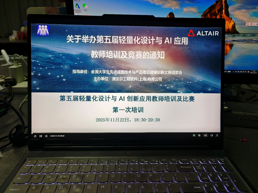 近日,在南京航空航天大学金城学院绿制制造产业学院组织下,航空运输与工程学院教师俞芸芸、张志力参加了由澳汰尔工程软件(上海)有限公司主办的“第五届轻量化设计与AI应用教师培训”。本次培训采用在线形式,聚焦于前沿工程软件工具与人工智能技术在工程设计中的应用,旨在提升教师的专业素养与教学能力,为培养适应未来产业需求的卓越工程人才储备师资力量。